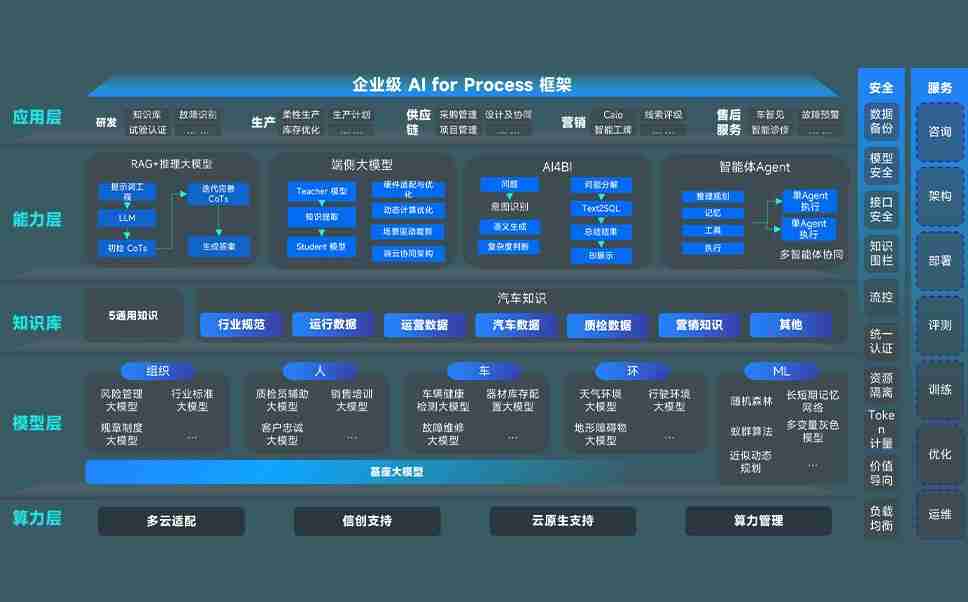 巅峰国际问学智车解决方案是一套基于AI技术的汽车行业智能化系统,,覆盖从底层算力到顶层AI应用的全栈方案。。。方案由算力层、、、模型层和应用层组成:算力层,,,,方案支持多种一体机配置,,,具备云端灵活部署、、多云适配以及动态优化计算资源的能力;模型层,,,,巅峰国际问学平台版提供了企业级AI应用一站式构建与管理平台,,,支持基于后训练强化技术的汽车企业专属模型的训练、、、评测和运营;应用层,,,巅峰国际问学DeepSeek版提供包括超级员工、、、、智能招采、、、、智能营销、、、、智能客服、、、、AI for BI等一系列解决方案,,可助力汽车行业实现数字化转型,,让管理更智能、、响应更敏捷。。。。